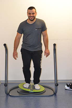 In Einzeltherapie werden verschiedene Übungen für die Koordination, Stabilisation und Sturzprophylaxe auf instabilen Untergründen durchgeführt.